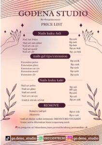 Price List Terbaru Godena Studio (harga dalam ribuan, sudah termasuk manicure + vitamin untuk nail art):
