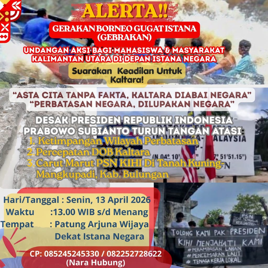Sebagai informasi, aksi turun ke jalan ini membawa jargon “Asta Cita Tanpa Fakta, Kaltara Diabai Negara” dan “Perbatasan Negara, Dilupakan Negara”. Massa mendesak pemerintah pusat segera menyelesaikan tiga persoalan utama di ujung utara Kalimantan, yakni ketimpangan wilayah perbatasan, percepatan Daerah Otonomi Baru (DOB), dan persoalan di sekitar Proyek Strategis Nasional (PSN).